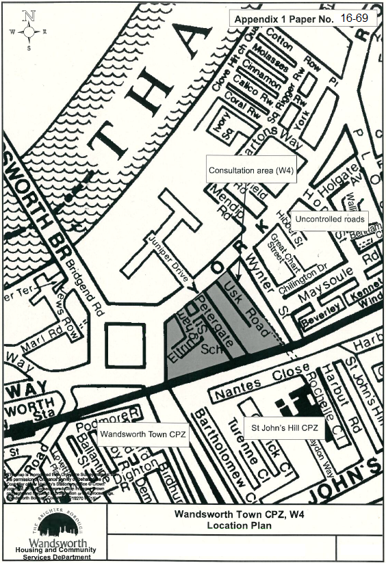 member, but which I will mention because there were a number of issues of importance to Latchmere, namely the possibility of extending the parking control zones (cpz) in Eltringham/Petergate Road area and Wye Street and installing a zebra crossing in Ingrave Street near to Falconbrook School –