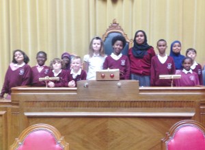 High View School’s Council on a visit to meet the Mayor of Wandsworth and to see the Council Chamber. The Mayor, with some of the staff and me, gave a “lesson” about what your council does. I think the picture of the School Council standing round and behind the Mayor’s chair shows that they enjoyed the visit.