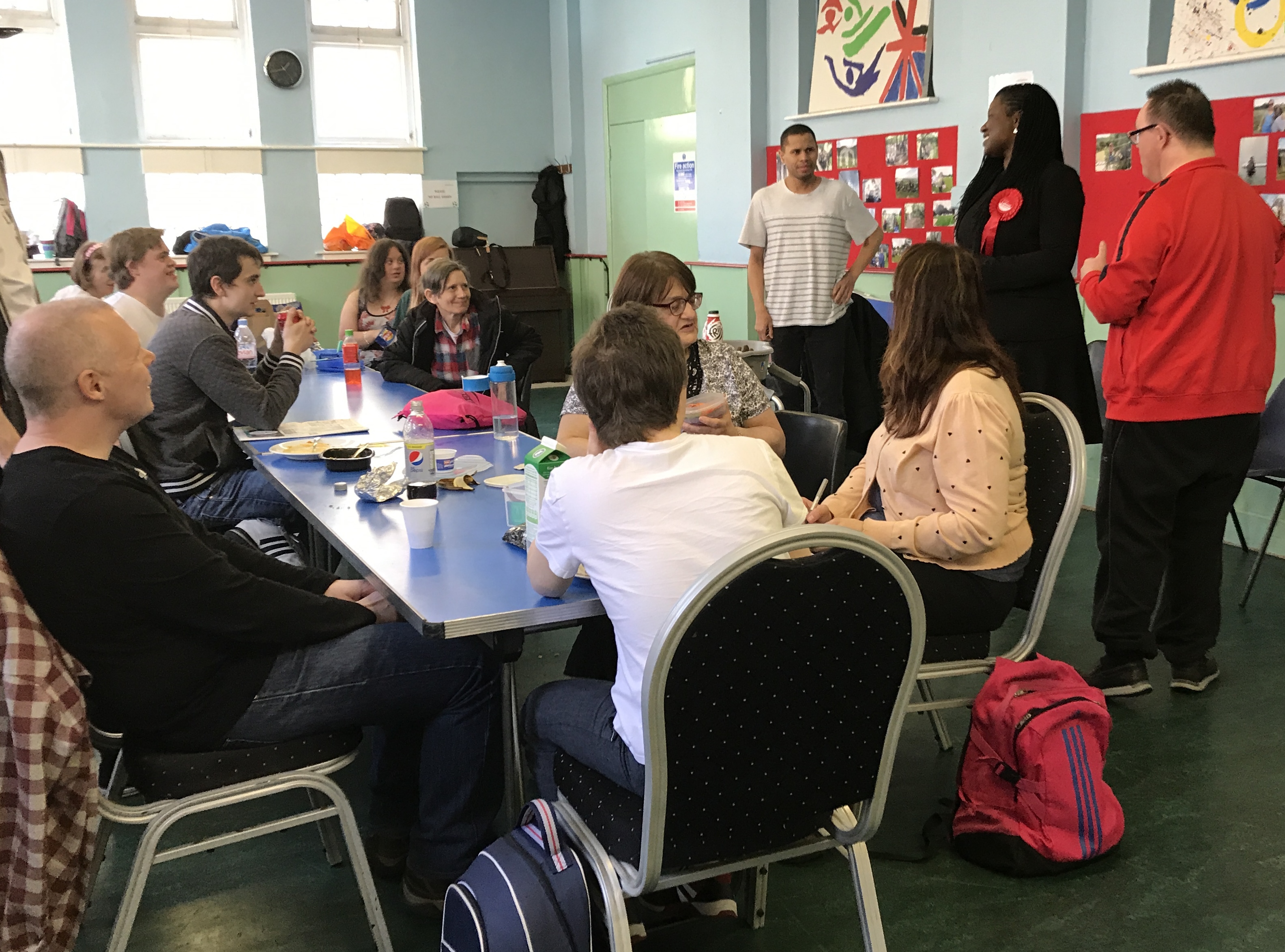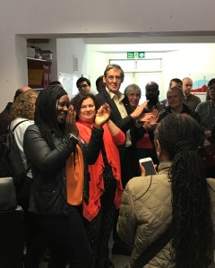 - And then on Monday, back to serious campaigning, first with the Borough-wide South Thames College hustings at mid-day. This had 2 Lib/Dems, a UKIP candidate, a Green party candidate and Marsha, Battersea’s Labour candidate. The audience, a group of maybe 50, was a very diverse set of further education college students, some of whom were interested from the off and some were bored and speedy departees (Interestingly enough when the UKIP candidate got into a dispute with the chair, a fair number walked out; they were not interested in any hassle). It was the first time Marsha had “appeared” at a hustings meeting. I was impressed by the amount of homework she did in advance but also couldn’t help noticing how nervous she was. She needn’t have worried. Marsha has such an authentic, enthusiastic personality that she has a head start over almost all competitors!