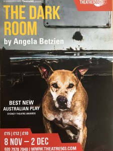 - On 1st December, I went to Theatre 503 to see The Dark Room, an Australian play by Angela Betzien. First a word about Theatre 503, it is based above the Latchmere pub. It is, as they say, intimate or, rather more plainly, very small, which puts you in really close contact with the action and the actors. It invariably hosts “experimental” theatre and as it’s above the pub, it gives one a great chance, after the show, to have a drink and chat with the cast and discuss the play, which I did with Alasdair Craig, one of the four actors.