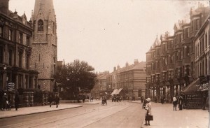 “It’s St. Paul’s Church, St John’s Hill, looking east towards the Junction and likely to be 1920s because of (the woman’s) cloche hat…Church became Louvaine Area Residents’ Association HQ (LARA) when made redundant – and was used for Battersea LP meetings! – but is now apartments. St Paul’s started life as the daughter church to St John’s, Usk Rd but the latter struggled to sustain its congregation even before it was destroyed by a V2 in 1945 and, in any case, by the 1930s the parish had been reorganised and renamed St Paul’s. It was subsequently combined with St Peter’s, Plough Rd, which despite having had its building demolished twice, is now the only surviving Anglican congregation of the three – hopefully the new church in Plough Road will open soon for them.“