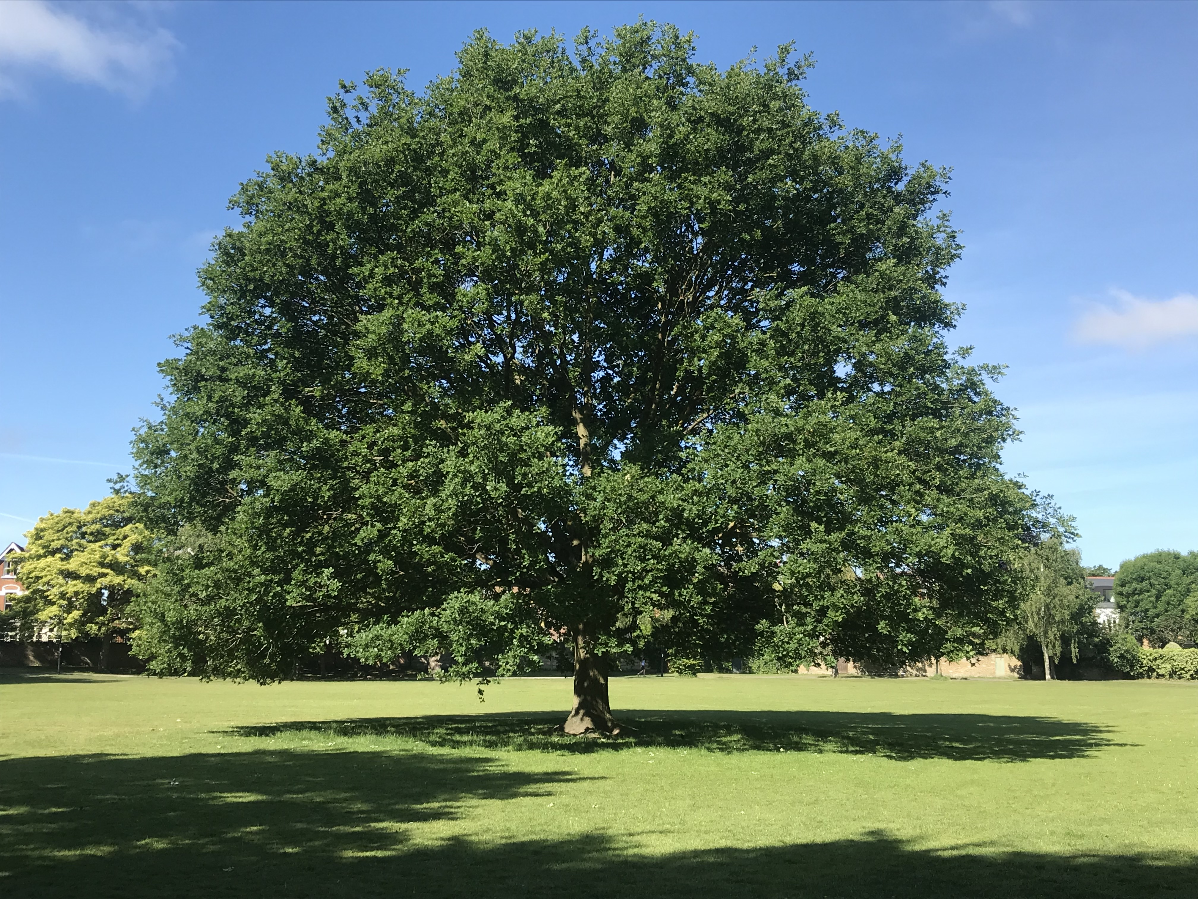 another. Brilliant weather, day after day. The sunniest May on record and probably the warmest and driest. Again, I have sat in the garden for more hours in May, than in some years in the past, and there enjoyed the bird song”. The bluebells and the apple blossom have now gone and, judging from the Park and the Common, we are on the verge of an official drought. Last month I had a picture of May blossom, this time my tree of the month is this magnificent young oak on Wandsworth Common.