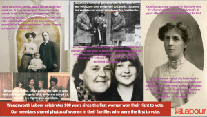 Clearly, this kind of life was impossible without very strong, informal, community bonds. Women in particular must have shared endless family tasks and, most particularly, childcare duties. The early scenes of working-class life in the East End in Sarah Gavron’s film Suffragette (2015) struck me as having very much the same flavour as my grandmother’s stories. If you’ve not seen the film, I highly recommend it. The leaflet pictured below was produced by Wandsworth Labour Parties, two years ago, to commemorate the first centenary of the women’s suffrage. You can see it includes the picture of my grandparents.