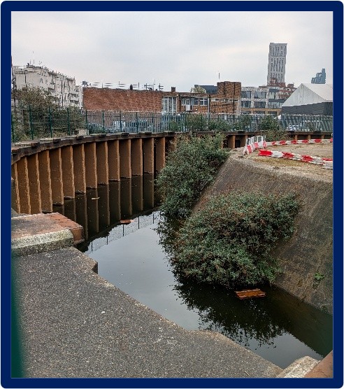 - On the morning of the 24th March, the members of the Planning Applications Committee went for a site visit to the Wandsworth Gasworks site. It is a large, derelict, noxious, industrial ruin of a site, covered with gas pipes, concrete, scrap metal and the detritus of a century of heavy industry. The water in the picture is NOT the Wandle but the drowned, very deep, very large foundations of the old gasometer.