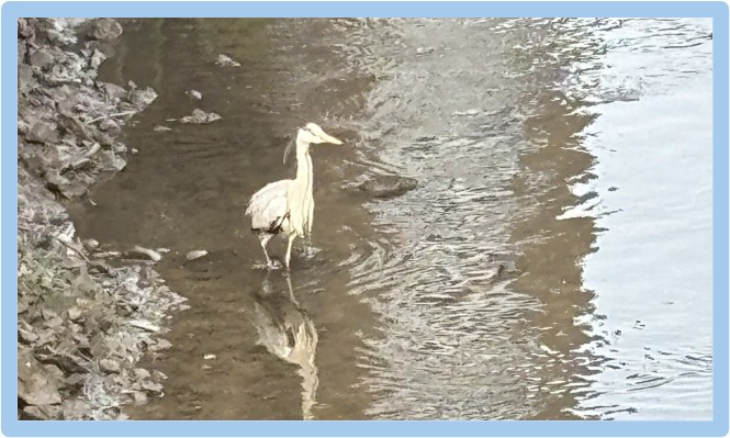 financial terms as the current application, but also better in policy terms. Better in policy terms would, in reality, have to mean more than 40% affordable housing and/or less than 29 storeys of height. But we are where we are with a dangerous, toxic, empty, under-used site so we accepted the application by 6 votes to 3. One possible beneficiary of a much-improved site was this heron spotted in the Wandle Estuary foreshore.