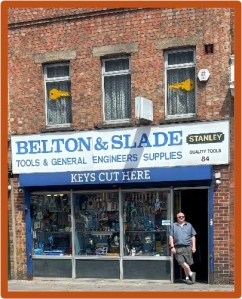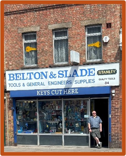 hardware shop, just yards away from the church. Over the years many people, especially councillors have asked me whether there was a family connection. I always said “No”, without ever knowing. So, I popped in and discovered a fabulous old-style store – stacked with hardware stock of all shapes and sizes, imperial and metric. It’s a treasure trove, which I wish I had known about in my DIY years. I introduced myself to the man in charge. I think he was a bit suspicious at first but fortunately I had my Council lanyard with me – he was/is Michael Belton. We had a brief conversation but unfortunately, there does not seem to be a family connection, which is strange as there are not many Beltons around. Anyway, here is Michael, standing proudly in his shop doorway.