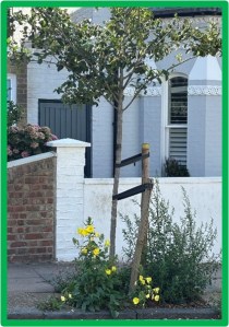 - The Council planted this two-year old sapling in my road, but it was listing about 15 degrees and in a dead, dry patch of earth. I rang the council’s tree helpline and it was staked and I added some of my not very well composted compost and now look at it – flourishing in its own street garden.