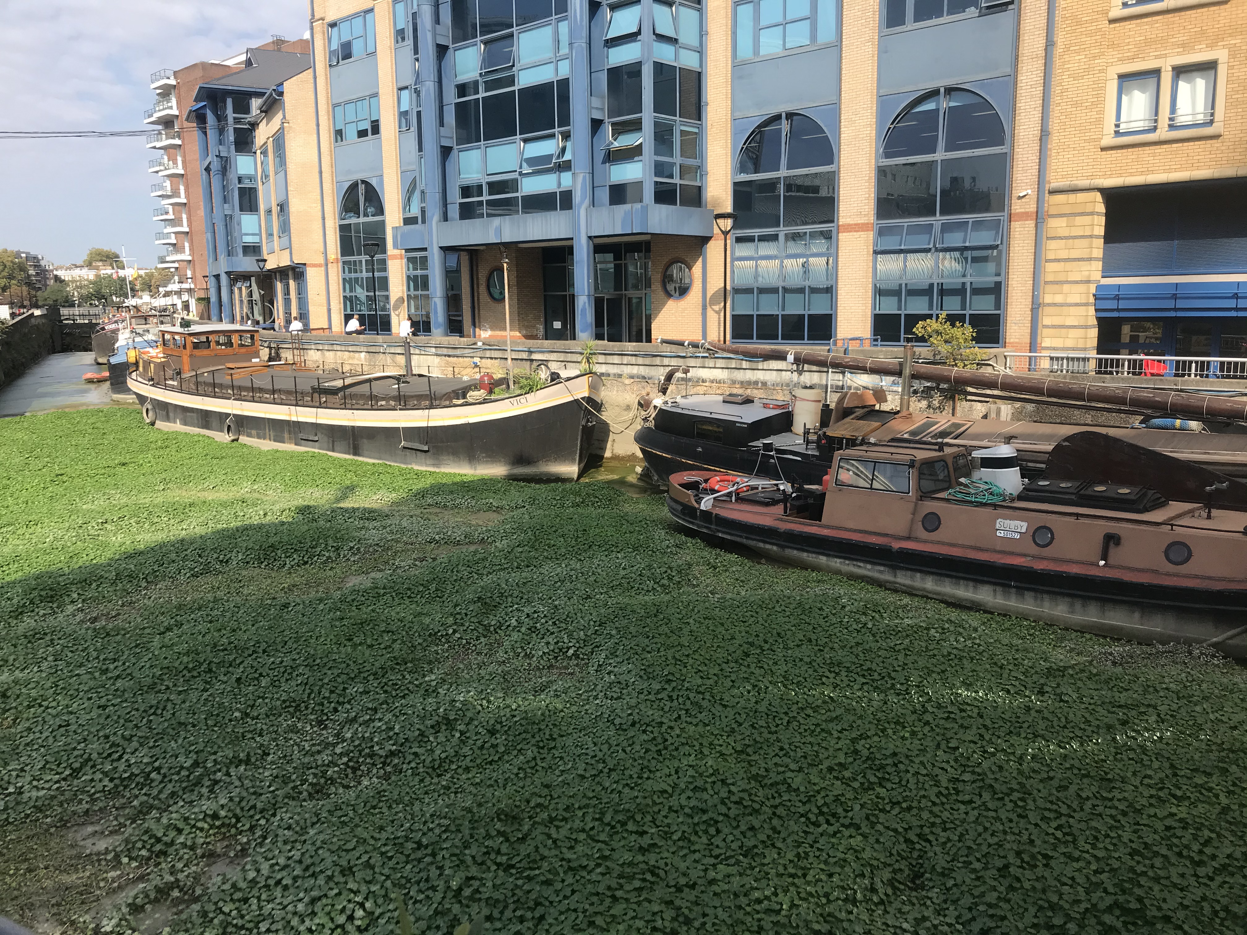 functional. They are concerned that some of the commercial interests around the dock would not mind too much if it ceased to function, freeing more of the site for further commercial development. Through contact with the Wandsworth Planning Department, I think I was able to re-assure them. However, the dock, judging by this picture, is not in a very healthy state. The weed is apparently a South American import, which has gone rampant in British conditions and is apparently very difficult to control! I hope that those interested in the health of the river and its docks can find a solution to the problem. The dock, by the way, is on the site of an old river creek and was excavated in 1884. - On 23rd September I had an online meeting of the Battersea Labour Party when we were due to vote for membership of the Labour Party’s National Executive Committee. I was very keen to support Keir Starmer’s leadership, but somehow, I managed to botch the connections and so was disenfranchised! Infuriating!