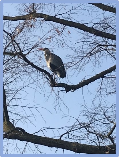 across the Common when I saw the very large, slow and apparently lazy wing beat of a heron making for one of the local ponds. And then it disappeared. I searched around the reeds without success. But something caused me to look up and there was my heron, the silent killer of the reeds. Not of course, unknown on the banks of the ponds but always a surprise to me when seen high in the trees. That sighting was a good start to a turbulent month.
