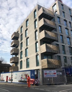- The new externally completed block at the corner of Grant and Plough Roads as seen here is, I think, an encouraging sign of the design quality that is being introduced, with the balconies referencing the Winstanley’s famous William Mitchell’s concrete sculptures.