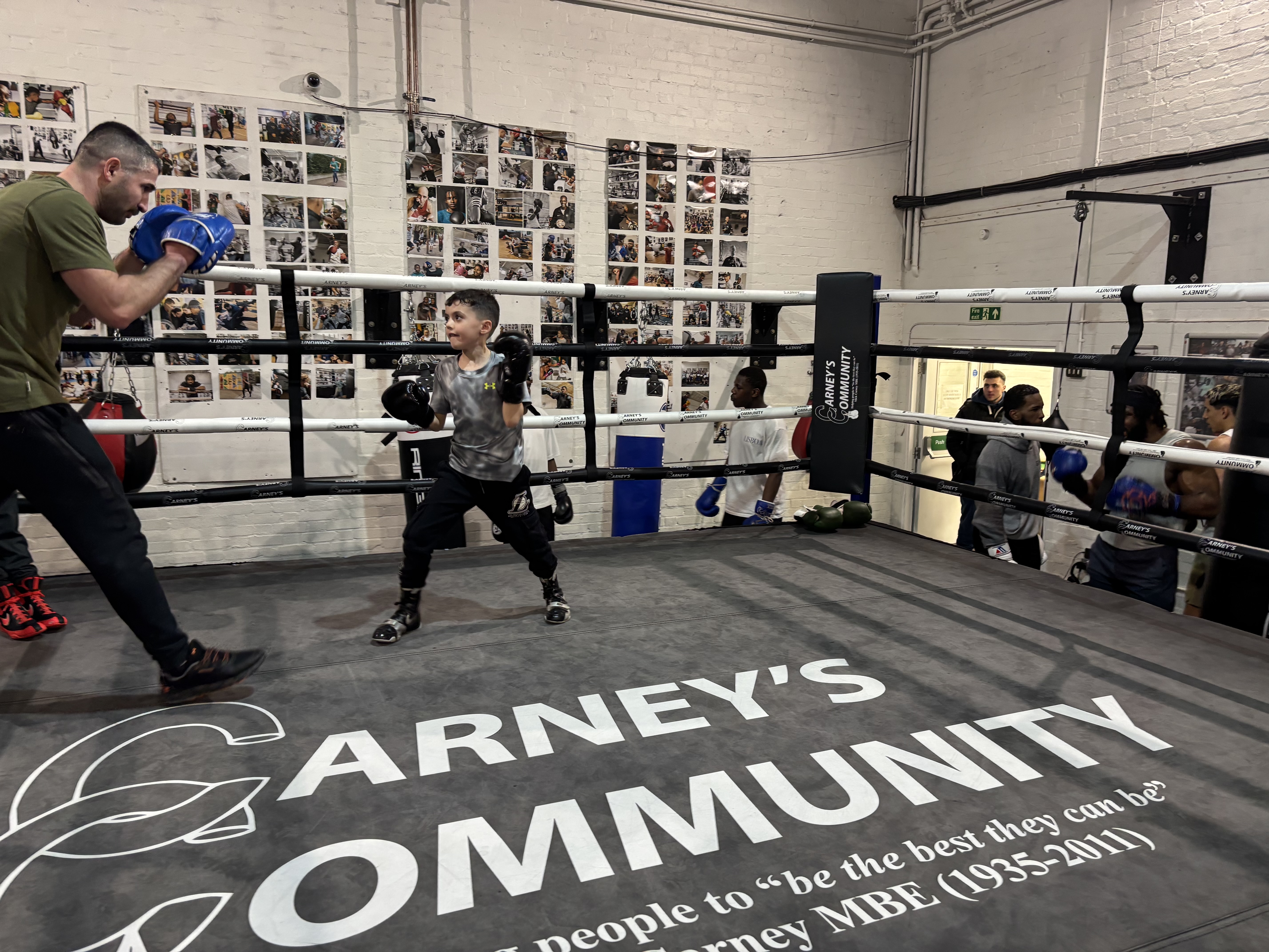 community and that is what they are, but outside observers would, I think, call themselves a youth club. Their membership comes from the large council estates in Battersea, but also from Roehampton and Vauxhall. Talking to club members is inspirational. Many of them “confess” to having been in trouble with the police before joining Carneys; many talk of the self-disciplinary qualities that they have got through boxing. The young lad in the ring, in this picture, is about 10 years younger than most of the members, but was still taking the sparring very seriously! - I think that we are very lucky in Battersea to be served by such lively youth clubs and community centres as Carney’s, Caius House, Providence House, Devas, and the Katherine Low Settlement. And it is also good to know that they work together positively and collectively providing help and assistance to many residents.