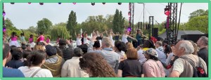 which featured it for three consecutive days. The application was to build a 28/29 storey tower on the riverside at Battersea Bridge, as illustrated here. The application, known as the Glassmills, was for 110 residential units, 50% of which would have been at social rent levels, for a riverside restaurant and an improved riverside walk, plus a couple of gyms. The application was rejected unanimously, and although readers of The Telegraph might find this difficult to believe, none of the committee members were lobbied by either Mick Jagger or Eric Clapton, or even by Felicity Kendall, despite The Telegraph’s encouragement to so believe. PAC decided on the merits of the case. - On 26th April we were off to Battersea Park, to take part in the first event of Wandsworth’s London Borough of Culture (LBOC) Year – Strictly Wandsworth – and great fun it was too, even if difficult to photograph. This pic shows the milling crowd, with dancers in the middle distance! Twenty plus Wandsworth dance groups