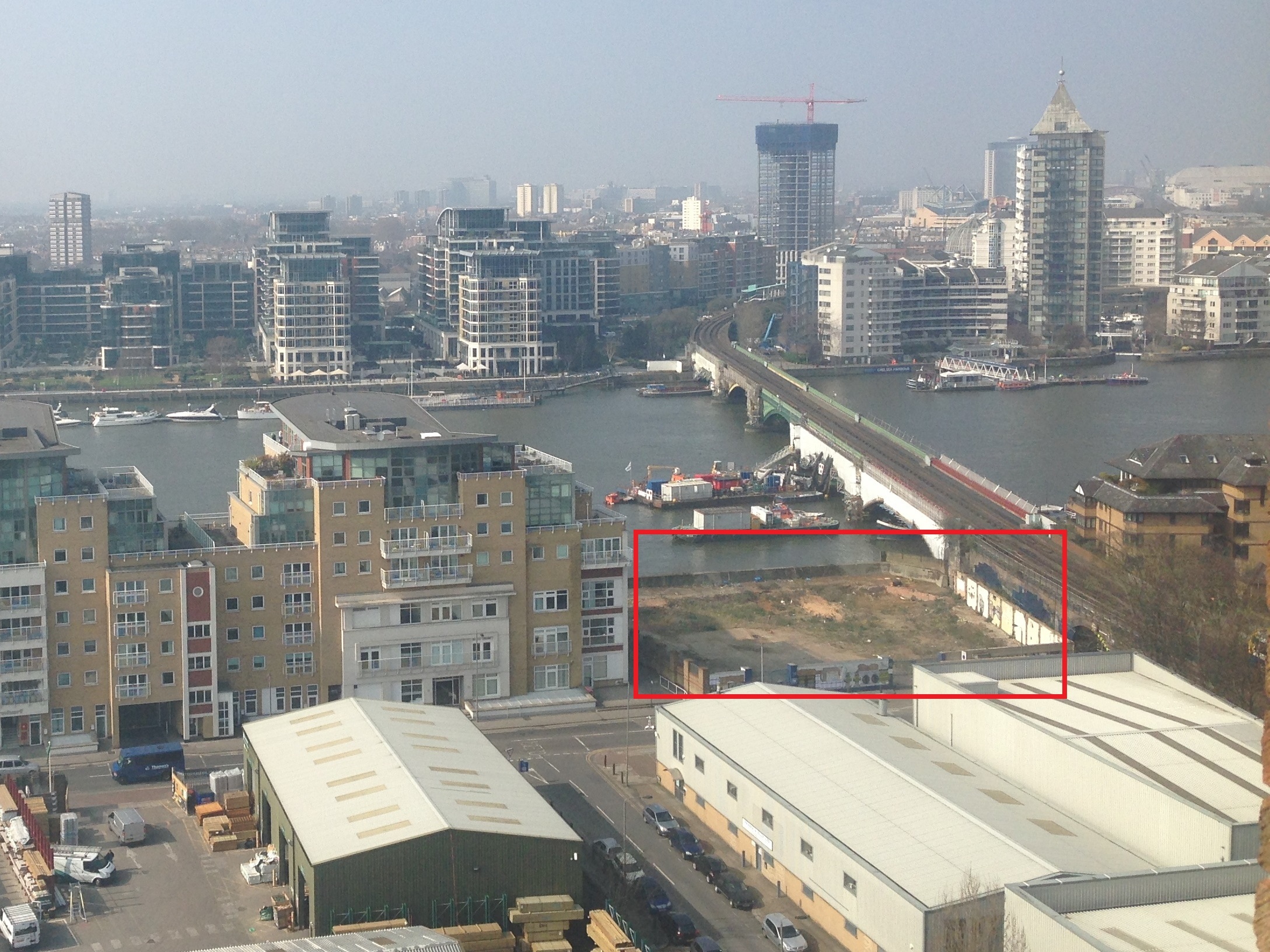 the 18th. There were a number of substantial applications, affecting North Battersea, and nearly all between “Battersea Village” and Wandsworth Bridge. The largest was the “tower” or pile of washing up dishes(pictured with Labour candidate Will Martindale – sorry about that! And below its site bordered in red, photographed from Totteridge House). Planned at 28 storeys or approximately 300 feet or 90 metres, it will, if approved, provide 135 residential units with the ground and first floor being reserved for shopping and other commercial units. 27 of the units will be, so-called, “affordable”, but whatever that means it almost certainly won’t be affordable to most people you and I know. At 28 storeys, it will drive a coach and horses through